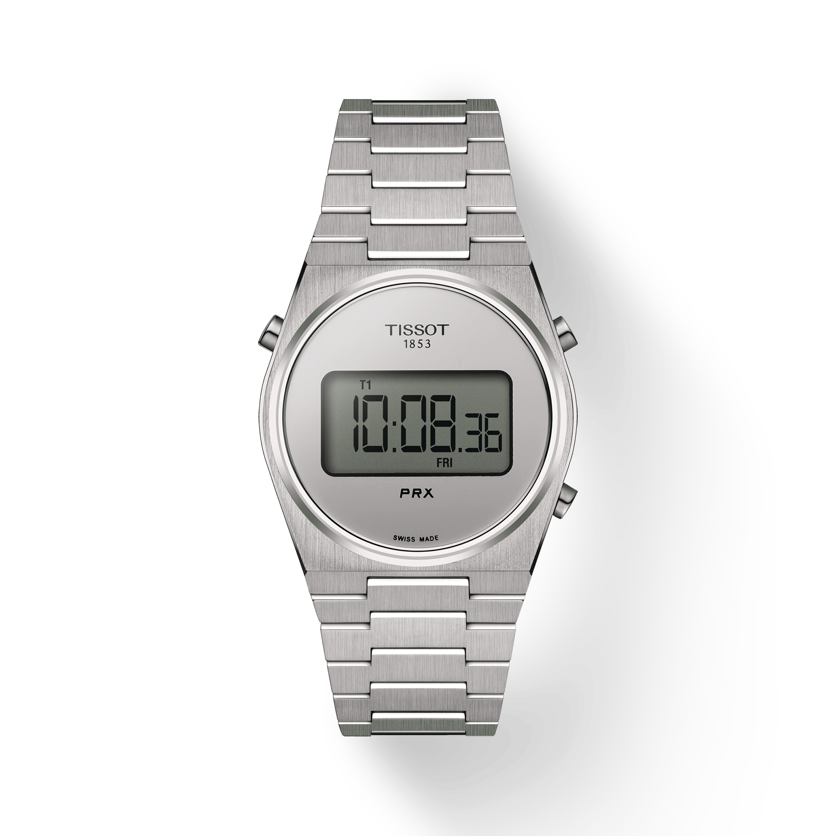Disponible en 35 mm et 40 mm et dans une variété de couleurs, la Tissot PRX Digital convient à tous les poignets. Grâce à ces fonctionnalités, cette montre vous accompagnera au quotidien : double fuseau horaire, date du jour, chronographe etc. Son bracelet satiné et sa boucle déployante apportent confort et modernité à ce garde-temps.