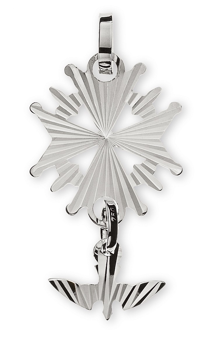 Croix huguenotte, or blanc 750/ 18 ct., 27x15mm