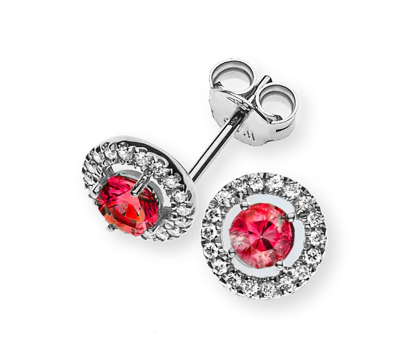 Clous d’oreilles or blanc 750 avec 2 rubis totale 0.48 ct. et 36 brillants H SI totale 0.10 ct.