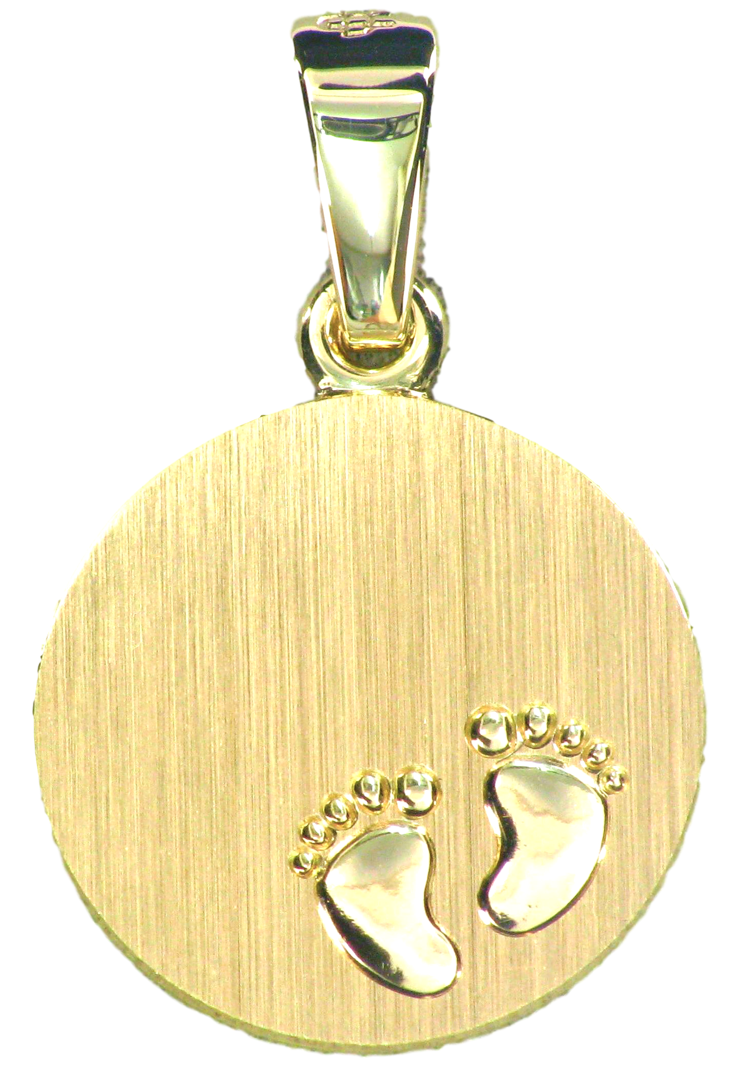 Pendentif à graver, satiné rond, or jaune 750/ 18 ct., 12 mm, pieds de bébé