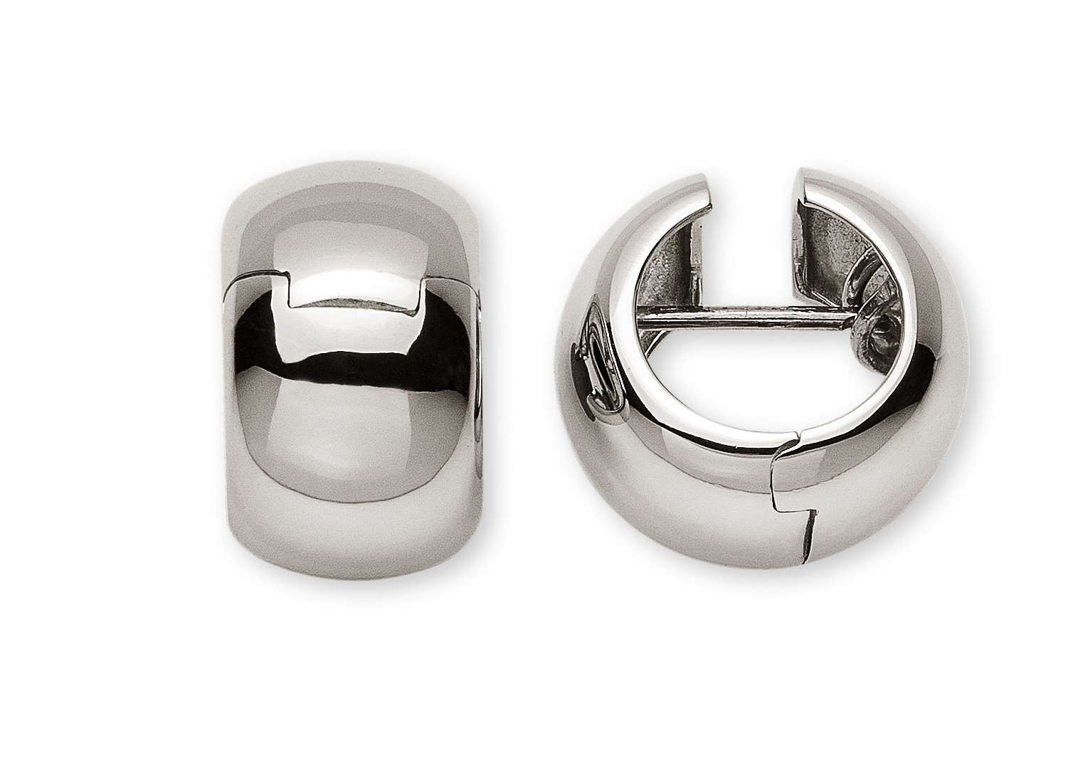 Créoles or gris 750, bombés fabriqué à la main, diamètre 17 mm, largeur 11 mm