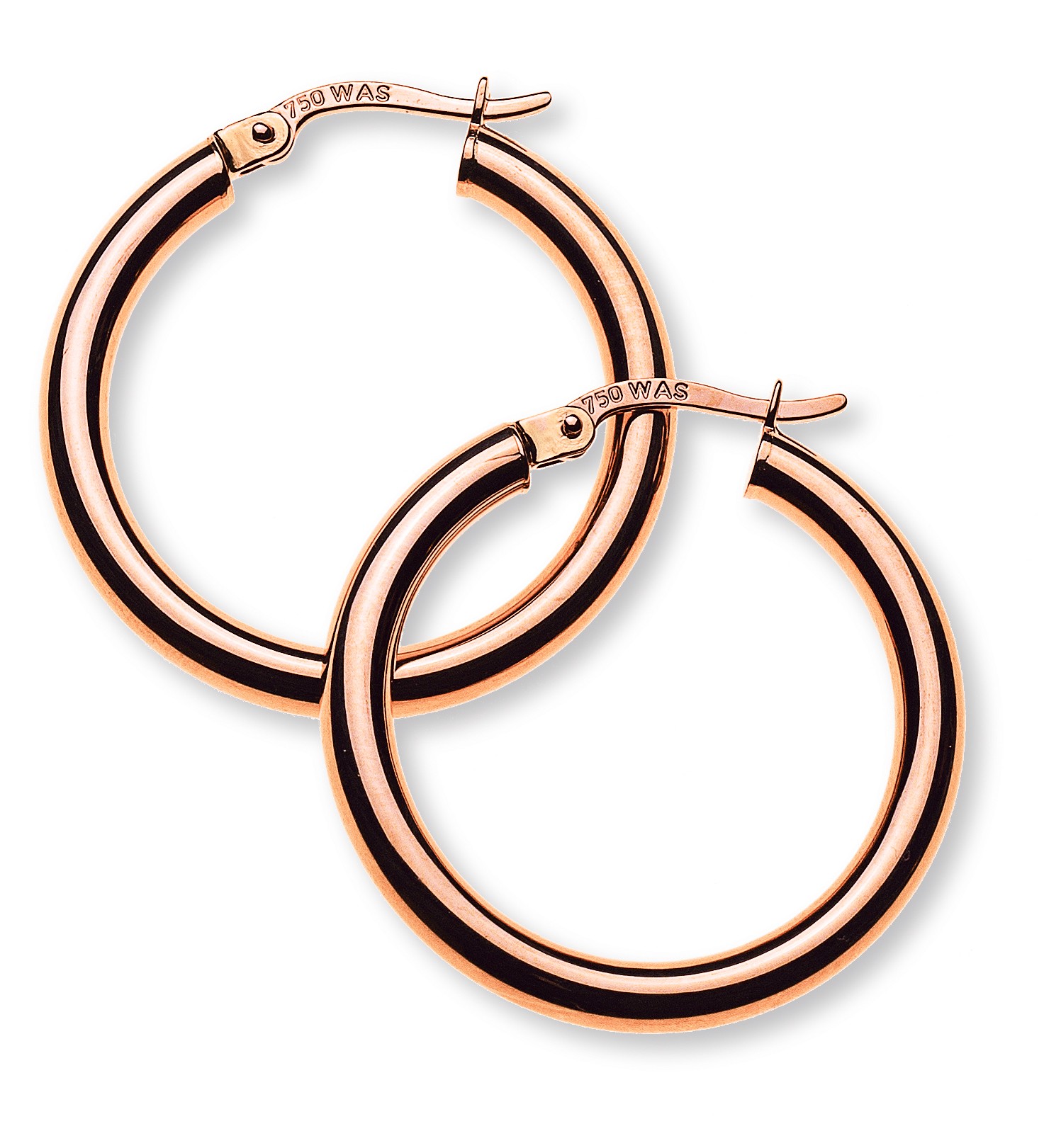 Créoles or rose 750, tube rond, diamètre 26 mm, largeur 3 mm,