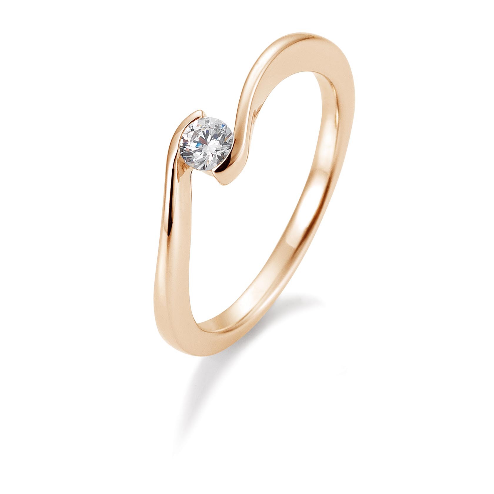 Bague solitaire or rose 750/18 ct. avec diamant, 0,15 Ct. H SI