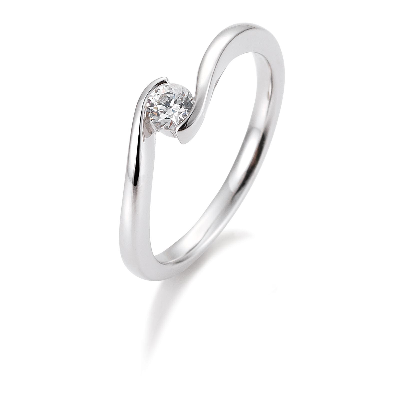 Bague solitaire or blanc 750/18 ct. avec diamant, 0,30 Ct. H SI