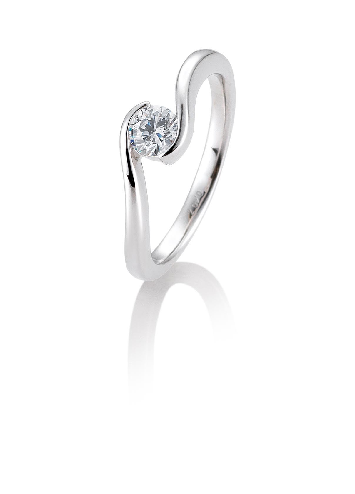 Bague solitaire or blanc 750/18 ct. avec diamant, 0,40 Ct. H SI