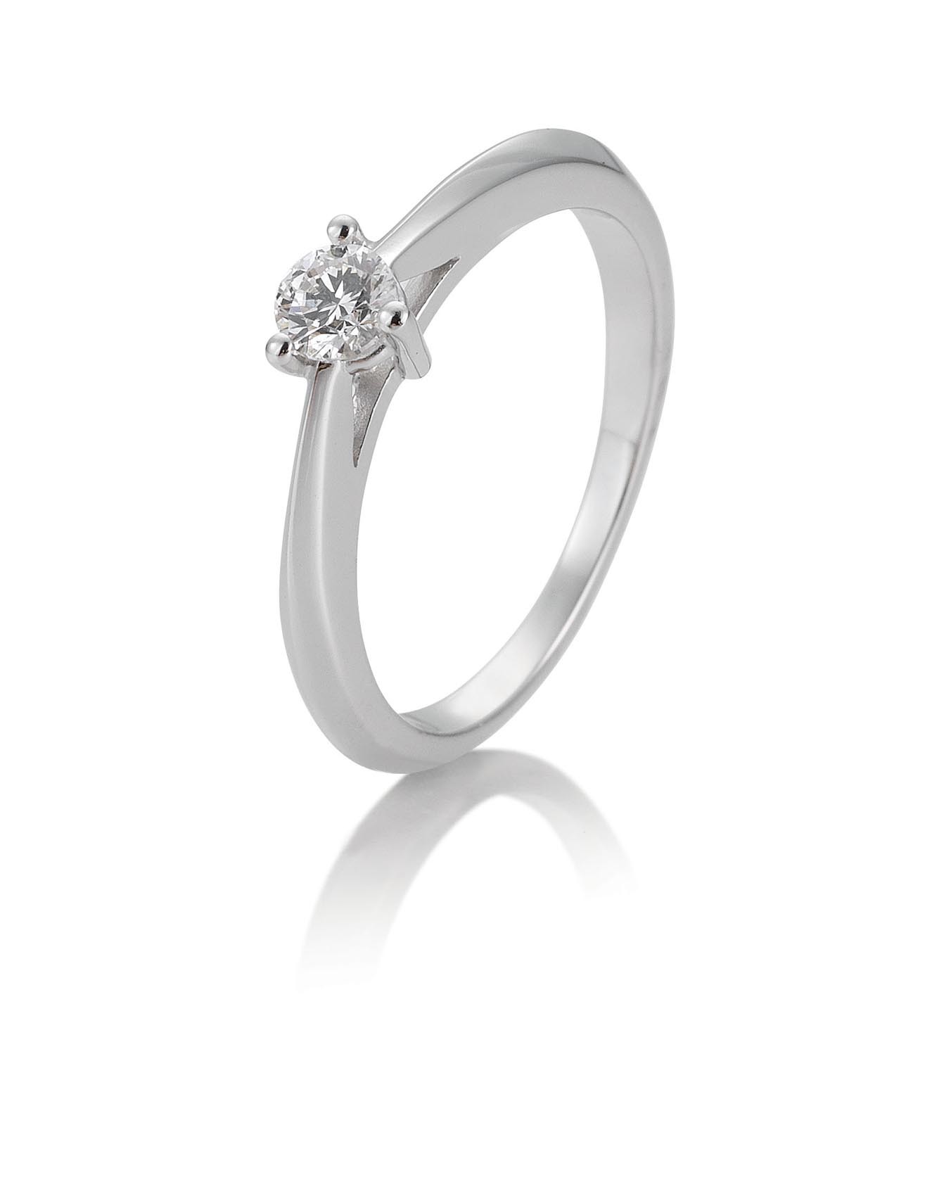 Bague solitaire or blanc 750/18 ct. avec diamant, 3 griffes, 0,25 Ct. H SI