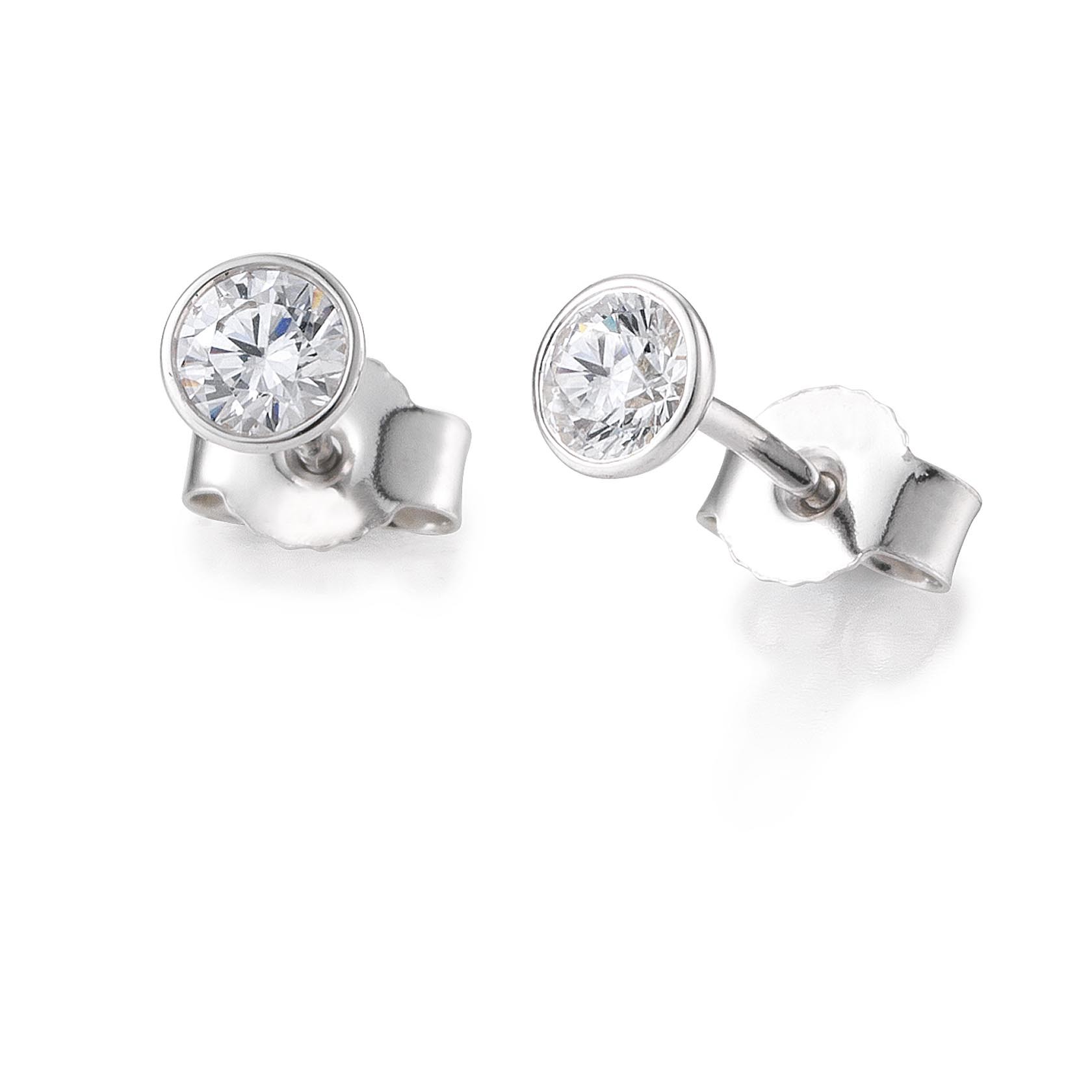 Clous d’oreilles or blanc 750/18 ct. 4 griffes avec diamant, total 0,15 Ct. H SI
