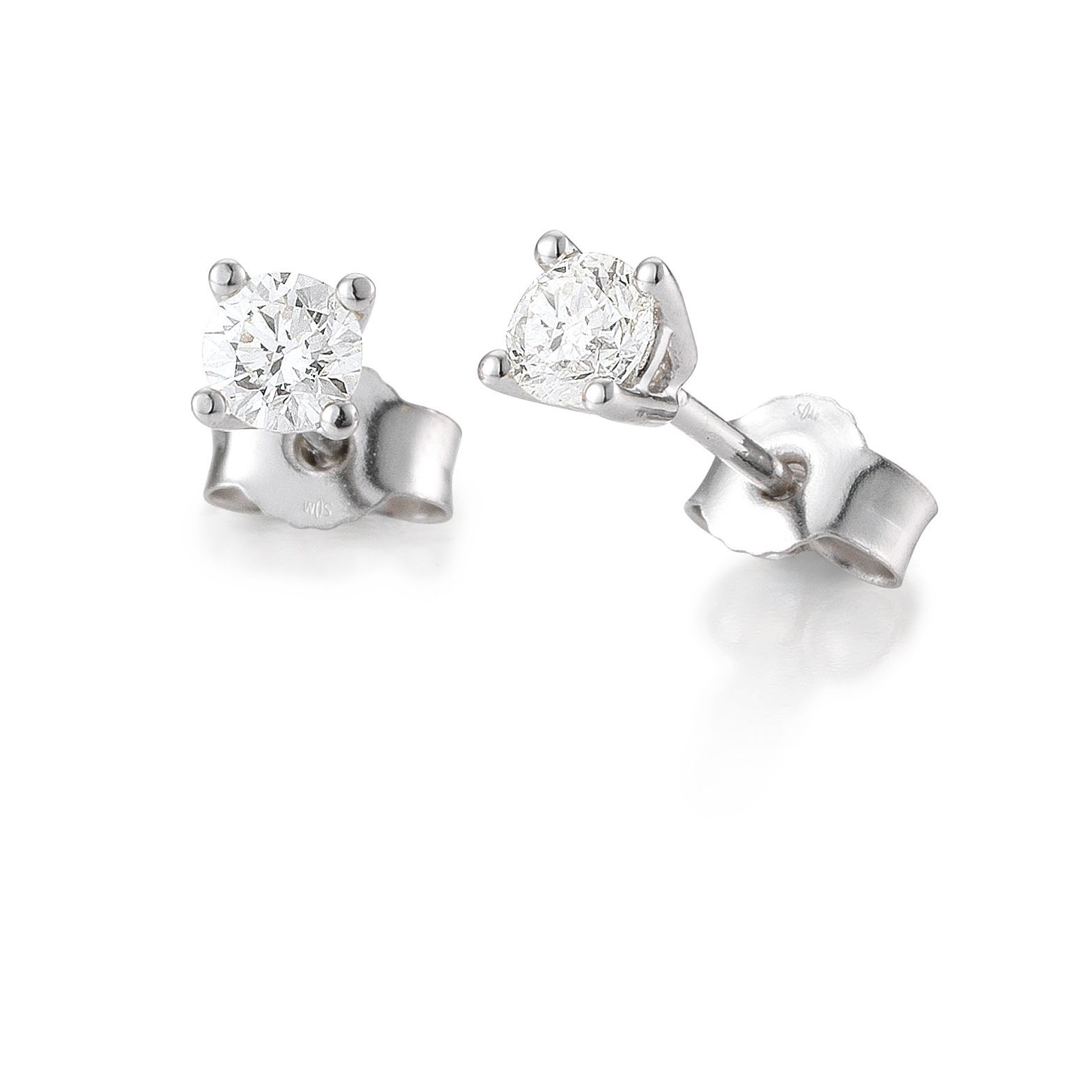 Clous d’oreilles or blanc 750/18 ct. 6 griffes avec diamant, total 0,25 Ct. H SI