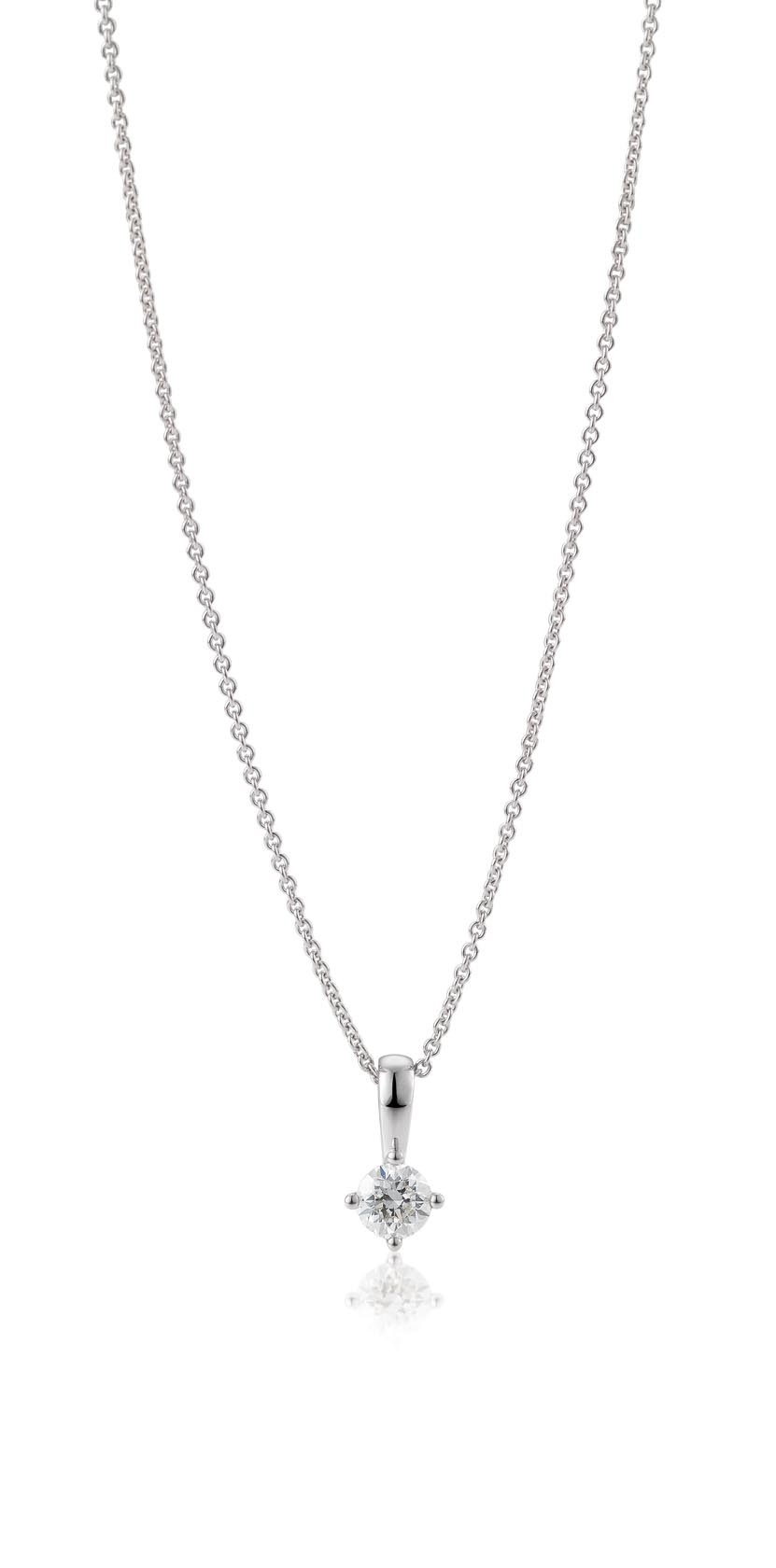 Pendentif diamant, or blanc 750/18 ct. 4 griffes, 0,25 Ct. H SI (sans chaîne)