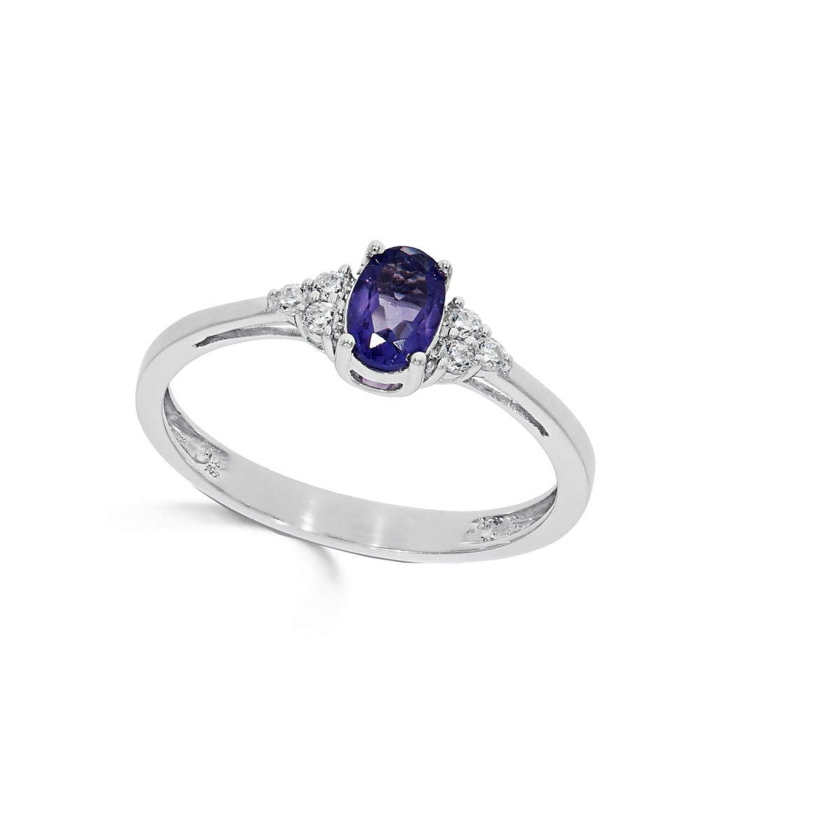 Bague or blanc 750/18 ct. avec 1 Saphir Bleu 0.44 ct. 2 Diamants 0.06 ct. 2 Diamants 0.03 ct. 6 Diamants 0.04 ct.