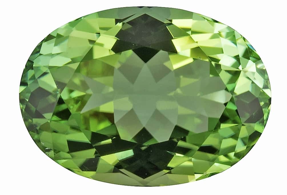 Die mehr oder weniger starke grüne Färbung des Peridots hängt von der Menge an Eisen ab, die in der Kristallstruktur enthalten ist.