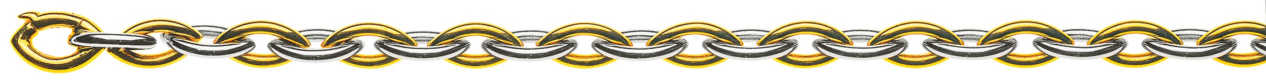 Navette-Halskette, zweifarbig (Gelb-/Weißgold) 750/18 ct, 3/4 massiv, handgefertigt, 7 mm, 45 cm