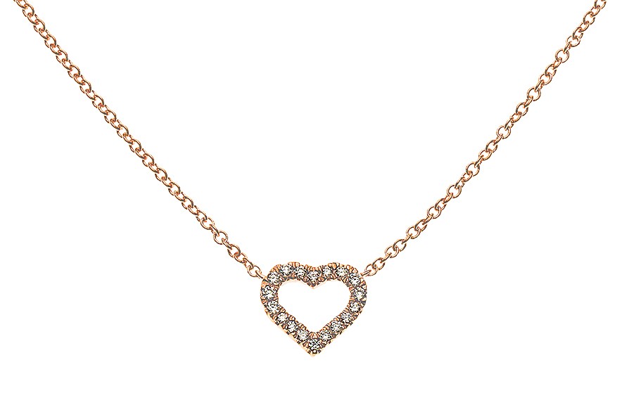 Herzkette 750er Roségold mit 20 Brillanten H SI 0.08 ct. 45 cm