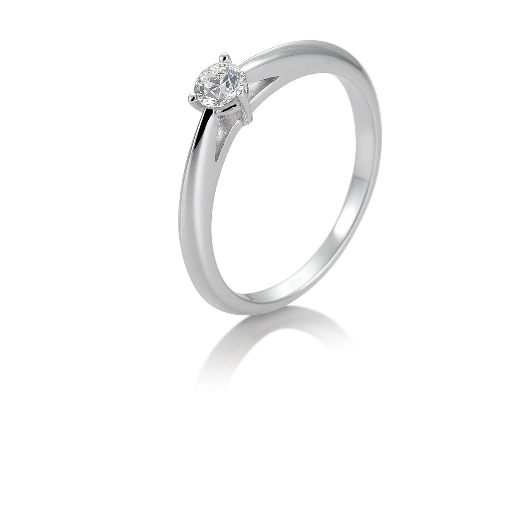 Solitärring aus Weißgold 750/18 ct. mit Diamant, 3 Krappen, 0,20 ct. H SI