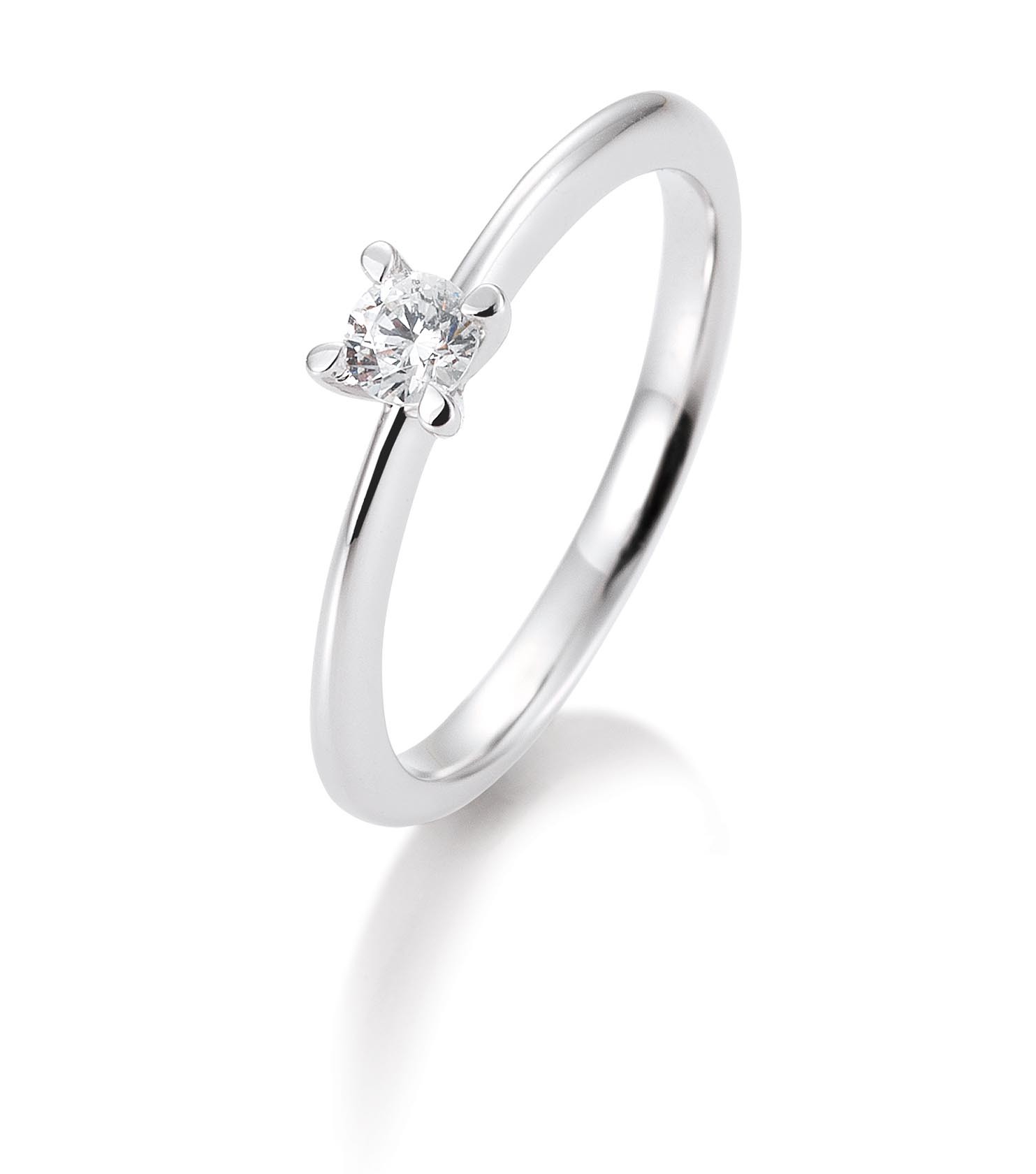 Solitärring aus Platin 950 mit Diamant, 4 Krappen, 0,20 ct. H SI