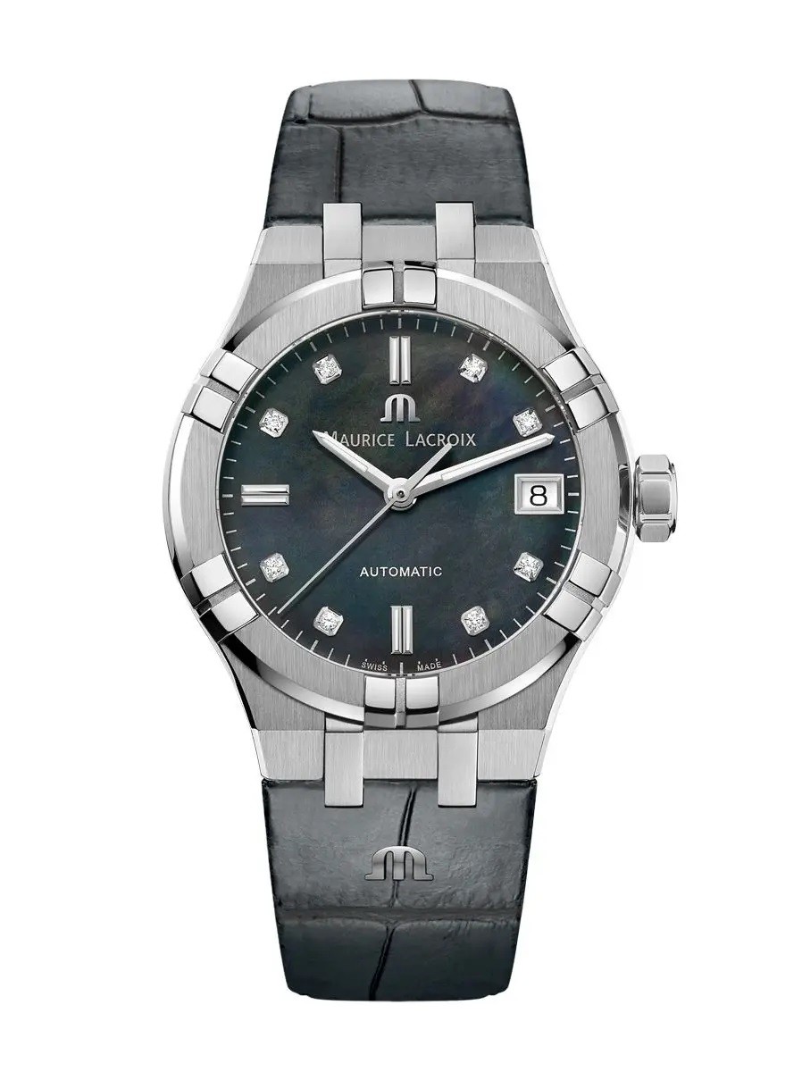 Maurice Lacroix AIKON Auto Ladies, 35 mm, schwarzes Perlmutt, 8 Diamanten, schwarzes Lederarmband