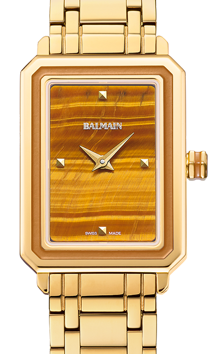 Balmain, Eirini, Stahl mit gelber PVD-Beschichtung, Tigerauge, Saphirglas, Armband in Stahl mit gelber PVD-Beschichtung, Quarz