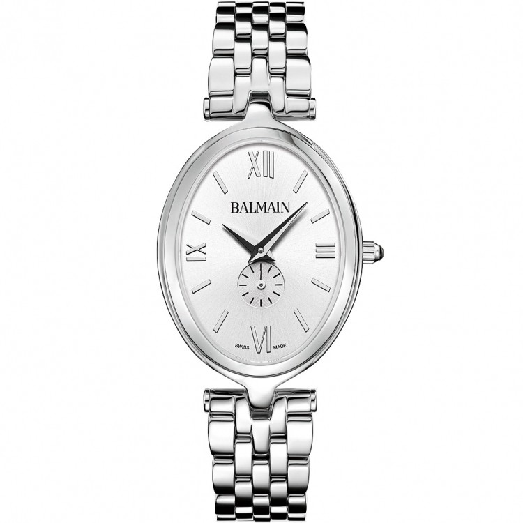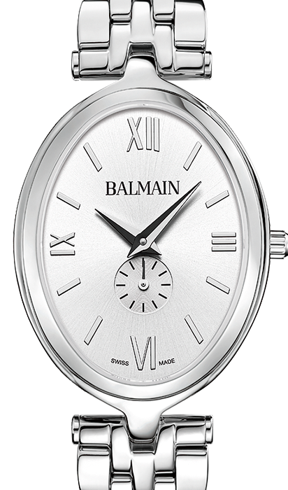 Balmain Quarzuhr, Haute Elegance Oval Kollektion, Stahlgehäuse, silberfarbenes Zifferblatt, Saphirglas, Stahlarmband.