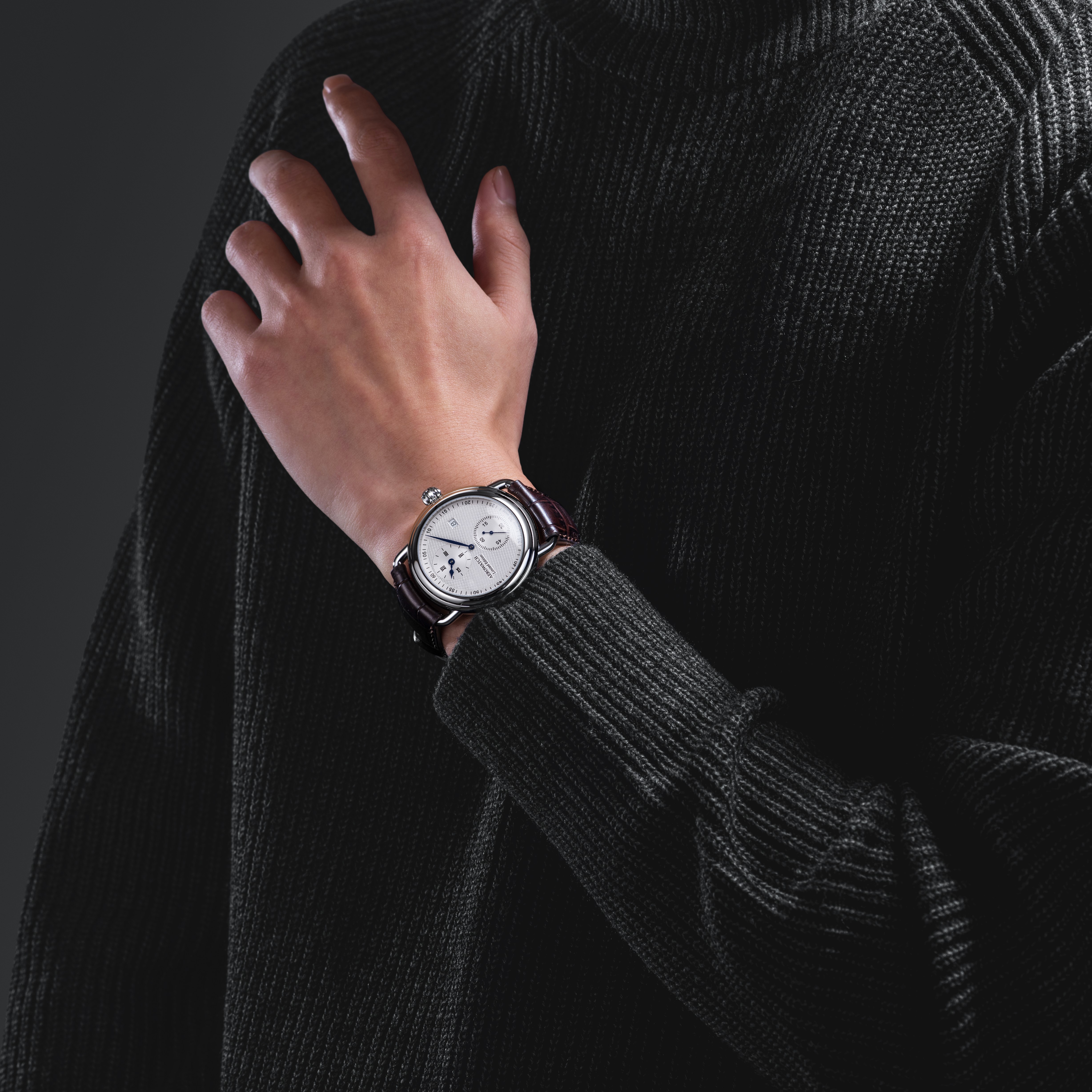 AEROWATCH, ansässig im Jura, der Wiege der Schweizer Uhrmacherkunst, präsentiert voller Stolz sein neuestes Schmuckstück: den Automatischen Regulator 1942 Limited Edition. Der Regulator zeichnet sich durch ein markantes Zifferblatt aus, auf dem sich nur der Minutenzeiger in der Mitte befindet. Die Stunden- und Sekundenanzeige ist dezentriert und verleiht der Uhr ein ungewöhnliches und fesselndes Aussehen. Die Stunden- und Sekundenzähler ruhen auf einem mit „Clous de Paris“ verzierten Zifferblatt, das durch ein gewölbtes Saphirglas geschützt wird. Das leicht abgerundete Edelstahlgehäuse mit einem Durchmesser von 42 mm unterstreicht die klassische und zeitlose Eleganz dieser außergewöhnlichen Kreation. Die Uhr AEROWATCH Régulateur automatique 1942 Limited Edition beherbergt ein Sellita-Automatikwerk mit Datumsanzeige. Der transparente Gehäuseboden gibt den Blick auf das faszinierende Herz dieser legendären Uhr frei und hebt die Genialität und Präzision ihres Mechanismus hervor. Um den distinguierten Look der Uhr zu vervollständigen, wird sie mit einem Armband aus geprägtem Leder mit Ziernähten und einer Faltschließe versehen. Diese erstklassige Kreation verkörpert die für AEROWATCH typische schlichte und zeitlose Eleganz. Die Produktion des Automatischen Regulators 1942 Limited Edition ist streng auf 100 Stück limitiert. Tauchen Sie ein in die Exklusivität und die außergewöhnliche Handwerkskunst dieser limitierten Auflage, die ein echtes Zeugnis der jahrhundertealten Uhrmacherkunst von AEROWATCH ist.