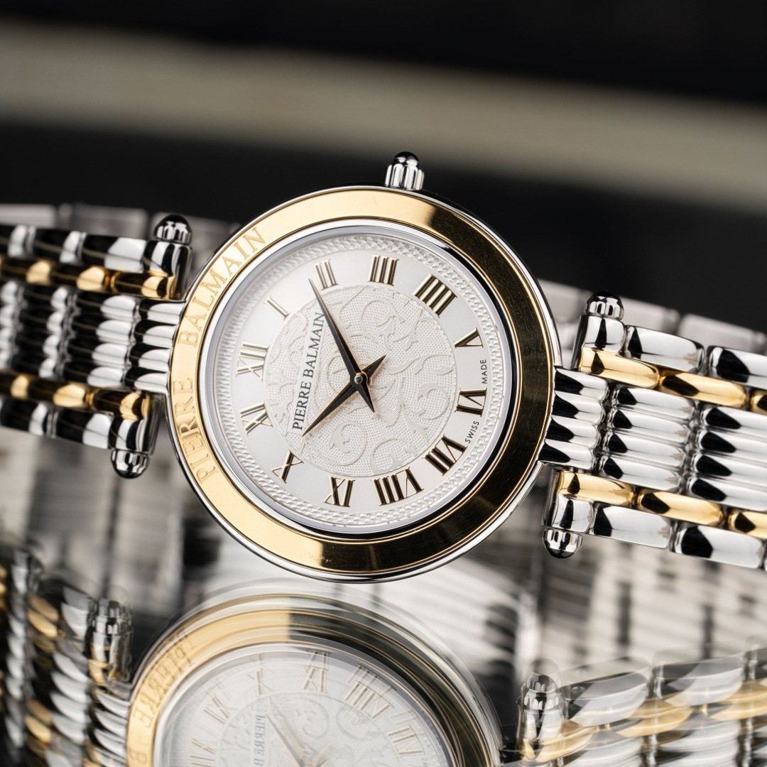 Die hohe Vintage-Eleganz von Balmain hat ihre eigene Klasse. Wo Geschmack auf Können trifft, bleibt ein Name in den Köpfen der Menschen haften: Pierre Balmain. Als Schöpfer der Pariser Haute Couture revolutionierte er die Modewelt seiner Zeit. Heute wird sein Erbe von einer Uhrenmarke gepflegt, die zu einem großen Schweizer Konzern gehört. Dieser Konzern stellt Montres Balmain technische und kommerzielle Mittel sowie eine langjährige Erfahrung in der Uhrenindustrie zur Verfügung. Montres Pierre Balmain hat seinen Sitz in Saint-Imier, im Berner Jura in der Schweiz. Das Unternehmen befindet sich im Herzen des „Vallée des Montres“, einer Region, in der die Uhrmacherei seit Generationen Tradition hat. Die Welt der Mode wird von einer Vielzahl von Quellen inspiriert und jede Balmain-Uhr hat ihre eigene Geschichte und Bedeutung. Alle Balmain-Modelle erfüllen die gleichen hohen Qualitätsstandards und werden mit der gleichen Liebe zum Detail hergestellt. Sie sind wahre Symbole für Eleganz und Kultiviertheit und erfüllen die Qualitäts- und Ästhetikanforderungen der anspruchsvollsten Frauen.