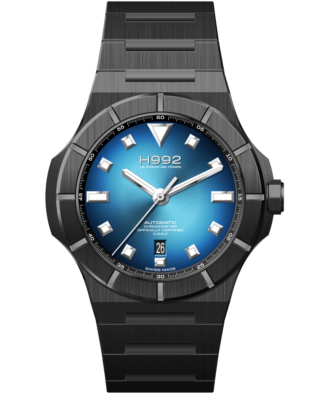 Ich bin die H4 Uhr. Ich bin die natürliche Weiterentwicklung der Marke H992, Ihre Lieblingsuhr in neuem Gewand. Ihr Design wurde bis ins kleinste Detail überarbeitet: ein schlichtes Zifferblatt, ein überarbeitetes Gehäuse, ein austauschbares Armband. Meine Luminova-Zeiger leuchten im Dunkeln und das Gehäuse mit Saphirglas sorgt dafür, dass nichts meinen Glanz trüben kann.