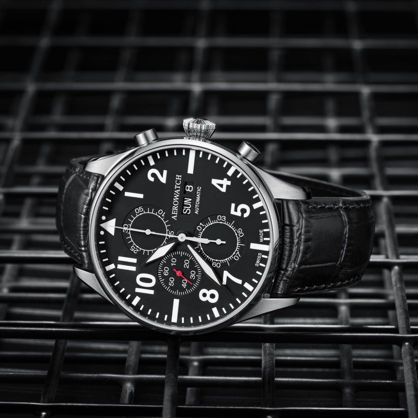 Aerowatch Les Grandes Classiques Pilot Automatic Chrono Day-Date Schwarz