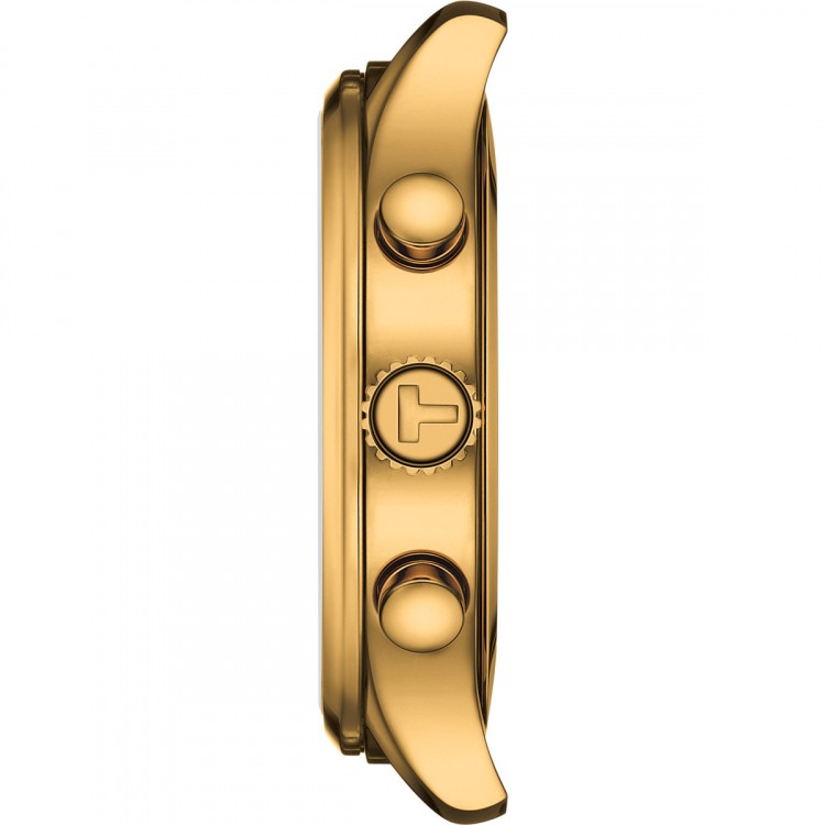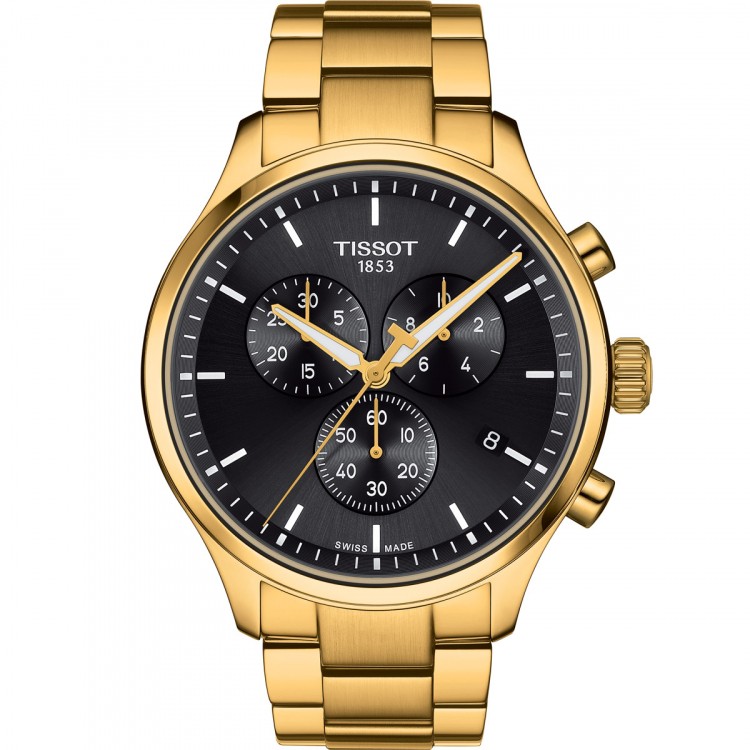 La Tissot Chrono XL est une nouvelle ligne de produits dans la collection Tissot Sport.Le chronographe avec mouvement à quartz de fabrication suisse a un boîtier en acier inoxydable 316 avec revêtement PVD or jaune. Le verre saphir résistant aux rayures protège le cadran noir avec les index et les chiffres arabes, qui sont recouverts de Superluminova. Le solide bracelet en acier inoxydable 316L avec revêtement PVD jaune-or est doté d’une boucle déployante à poussoirs. Le diamètre du boîtier de 45 mm souligne l’allure sportive de la Tissot Chrono XL.