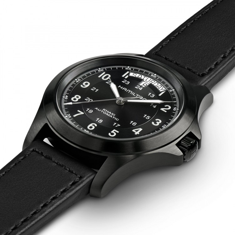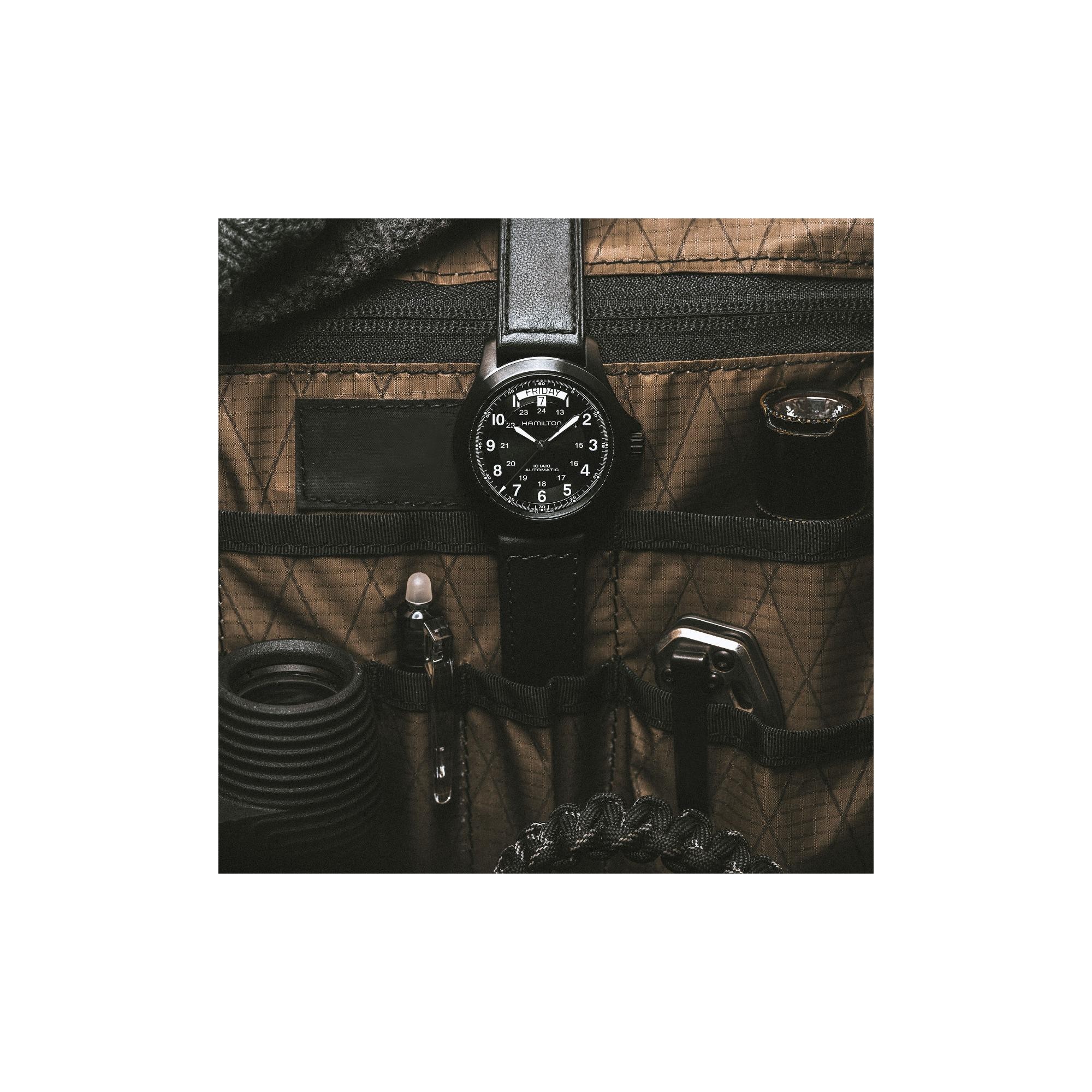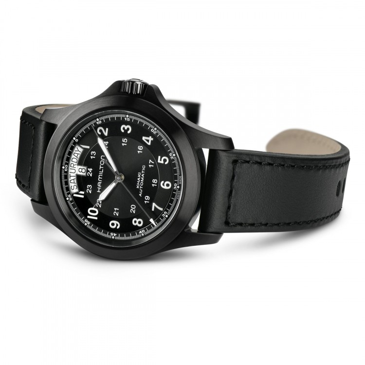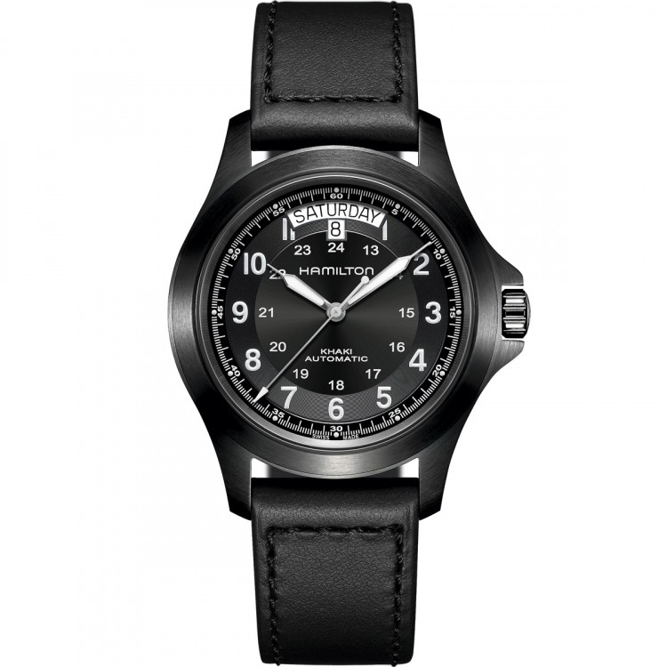 Nos montres militaires robustes et résistantes s’inspirent de l’héritage militaire d’Hamilton. Idéale pour braver la nuit, la Khaki Field King Auto arbore un boîtier à revêtement PVD noir, un cadran noir et un bracelet noir pour un style sobre.