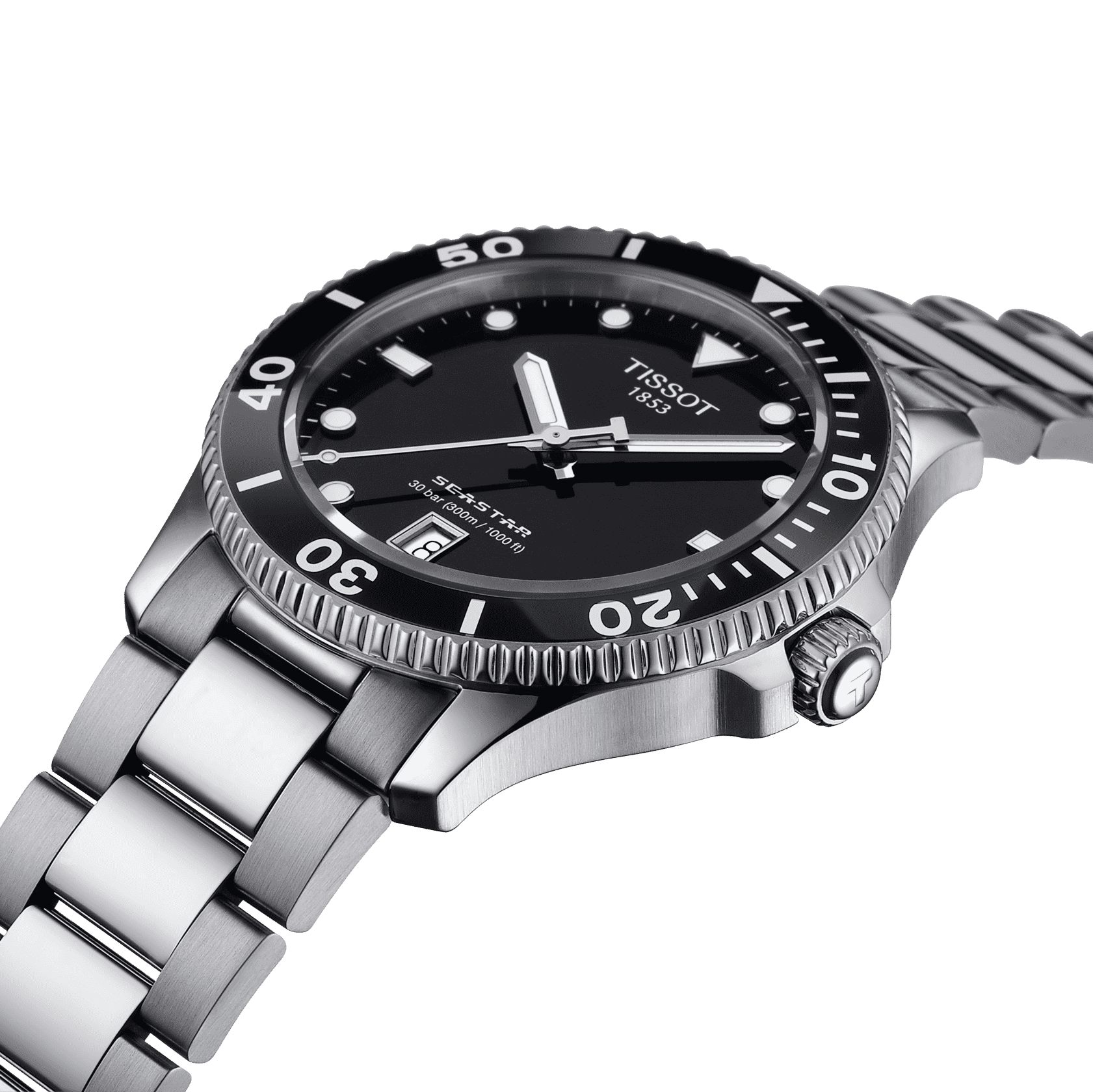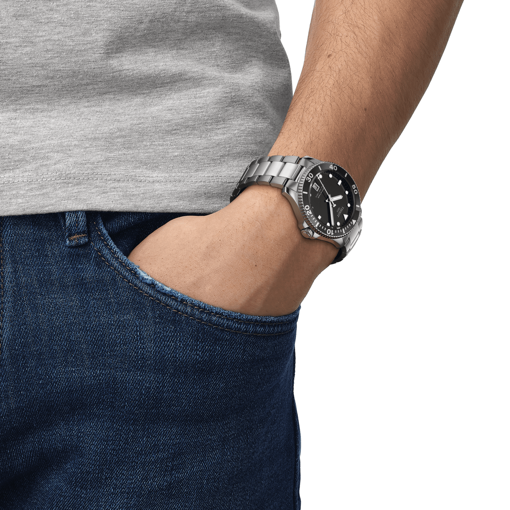 Le modèle Seastar 1000 Quartz 40 mm allie style et performance. Chaque modèle est un mariage harmonieux d’élégance et de technologie, alliant savoir-faire horloger suisse et design éternel. Cette taille de boîtier polyvalente permet de passer du jour à la nuit, tout en promettant des performances techniques exceptionnelles. Comme avec les modèles existants de 36 mm et 45,5 mm, ces pièces tirent leur nom de leur certification d’étanchéité de 1 000 pieds, équivalent à 30 ATM ou 300 mètres. Ils sont dotés de lunettes tournantes unidirectionnelles, pour une synchronisation fiable lors d’une activité sous-marine. La lisibilité en basse lumière est encore améliorée par l’application de Super-LumiNova® sur les aiguilles et indexes des heures. Les bracelets peuvent être interchangés à l’aide du système de changement de bracelet rapide et facile à utiliser, offrant la possibilité de choisir parmi une large gamme de bracelets Tissot et de personnaliser sa montre selon l’humeur ou l’occasion.