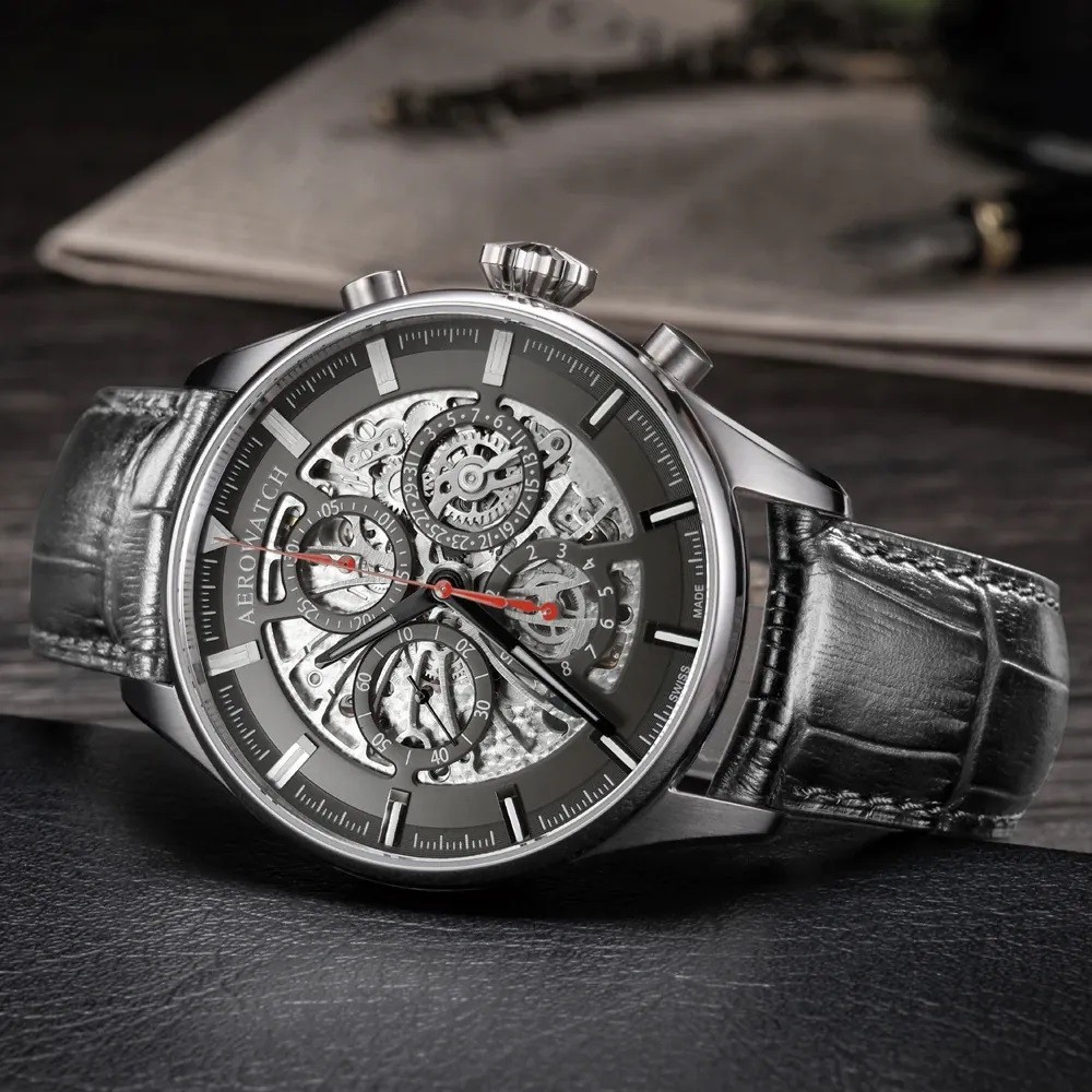 Aerowatch Les Grandes Classiques Chrono Skeleton Automatic Anthracite