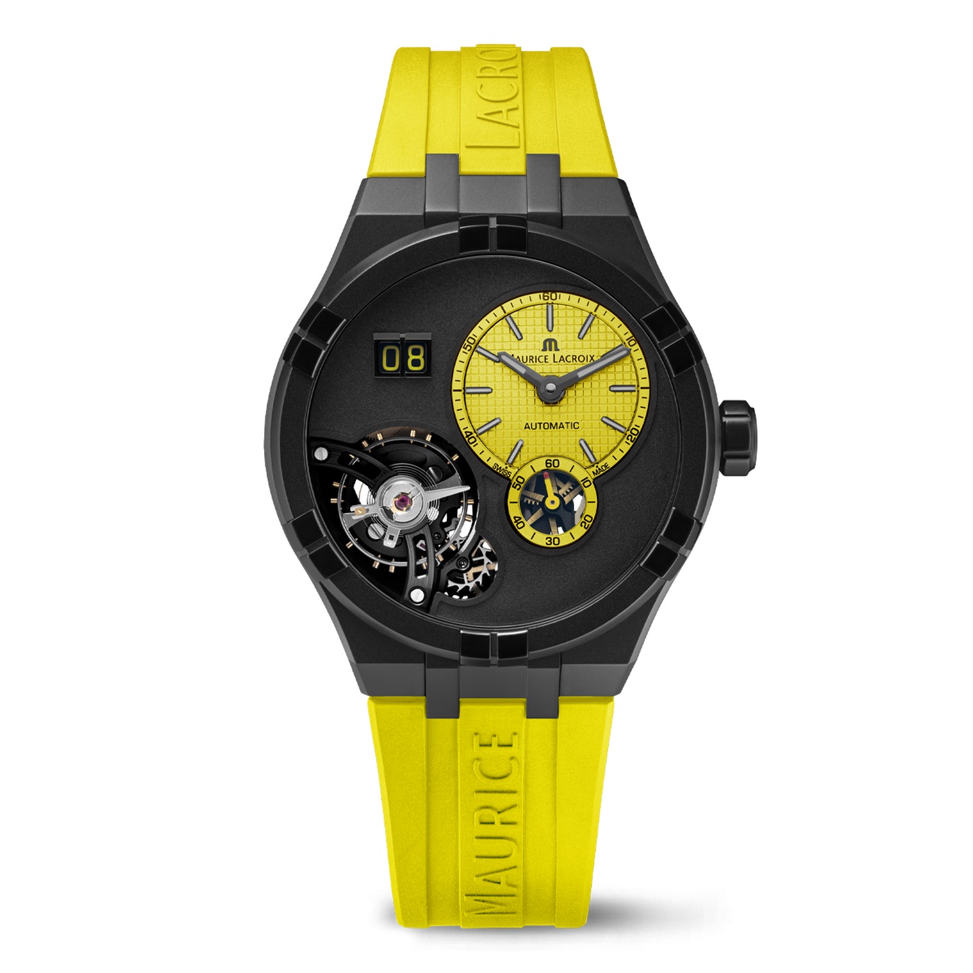 - BRACELET: Jaune, bracelet en caoutchouc, avec mention « Maurice Lacroix »