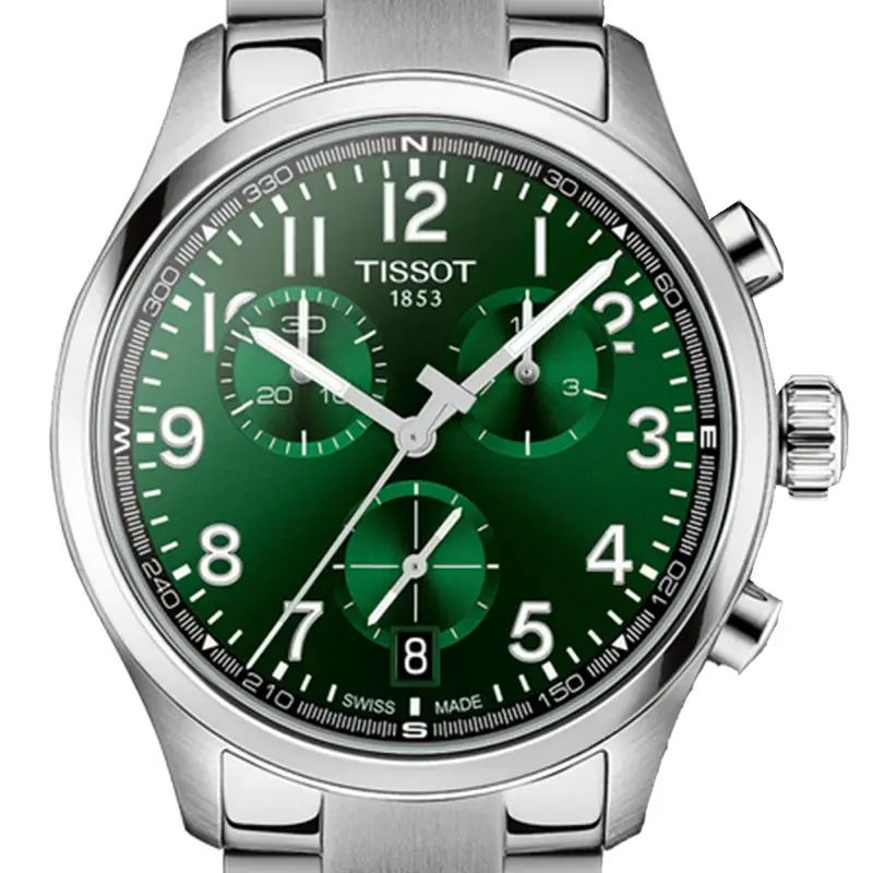 La Tissot Chrono L rejoins la collection Tissot XL en 42mm ! Inspirée de la Chrono XL, cette nouvelle montre est idéale pour ceux qui recherchent une montre sportive et élégante, doté d’une technologie suisse et d’un style moderne. Le mouvement chronographe à quartz G10.212 offre précision et robustesse. De plus, la montre est étanche jusqu’à une pression de 10 bars (100 mètres/330 pieds) et offre une visibilité dans des conditions de faible luminosité garantie par le revêtement Super-LumiNova® sur les aiguilles. Les bracelets peuvent être interchangeables grâce au système de changement rapide facile à utiliser de Tissot, ce qui permet à son propriétaire de choisir parmi une large gamme de bracelets Tissot compatibles et de personnaliser sa montre en fonction de l’occasion. Découvrez cette montre chronographe de 42 mm avec son cadran vert et son bracelet en acier inoxydable très chic.